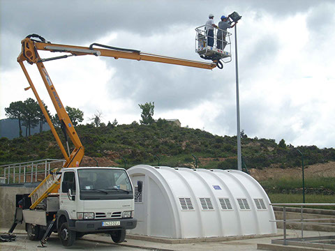 Contamos con maquinaria específica para el desarrollo de nuestras actividades contando con plataforma elevadora de 18 metros de altura.